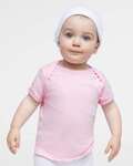 Rabbit Skins Infant 5.0 Ounce Baby Rib T-Shirt. Fit: Infant Unisex. 5.0 oz. 100% combed ringspun cotton 1x1 baby rib (Heather is 90/10 combed ringspun cotton/polyester.) White is sewn with 100% cotton thread. Flatlock seams. Double needle ribbed binding on lap shoulder neck and shoulders. Raw serge sleeves and bottom hem. Side seam construction. Easy Tear label.